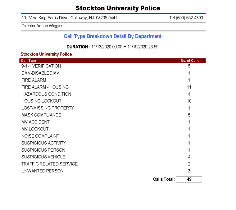 Stockton News Campus police blotter November 13, 2020 – November 19, 2020 By The Argo on November 23, 2020 Share this: Share on X (Opens in new window) X Share on Facebook (Opens in new window) Facebook More Share on LinkedIn (Opens in new window) LinkedIn Like Loading... Related Categories: Stockton News