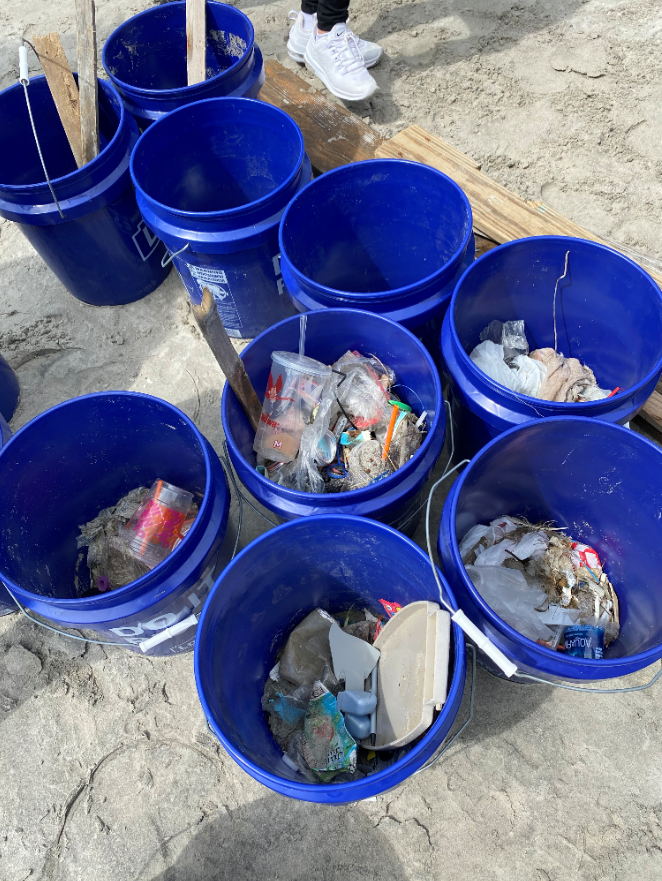 Love Blue is a local non-profit responsible for hosting beach clean ups in South Jersey and across the east coast. Some 80 Stockton students gathered on Brigantine Beach last Saturday morning with blue buckets in hand, ready for the beach sweeps. These volunteers were from Stockton’s Love Blue club, the Habitat for Humanity club, andseveral Greek life organizations including Delta Phi Epsilon, Alpha Chi Rho, and Phi Delta Theta. The group split in two, covering ground east and west of 35th street. Love Blue bracelets and T-shirts are awarded to those who collect the most trash. Over the course of a single semester, the Love Blue Stockton chapter removes approximately 1,000 pounds of trash from local beaches on average.