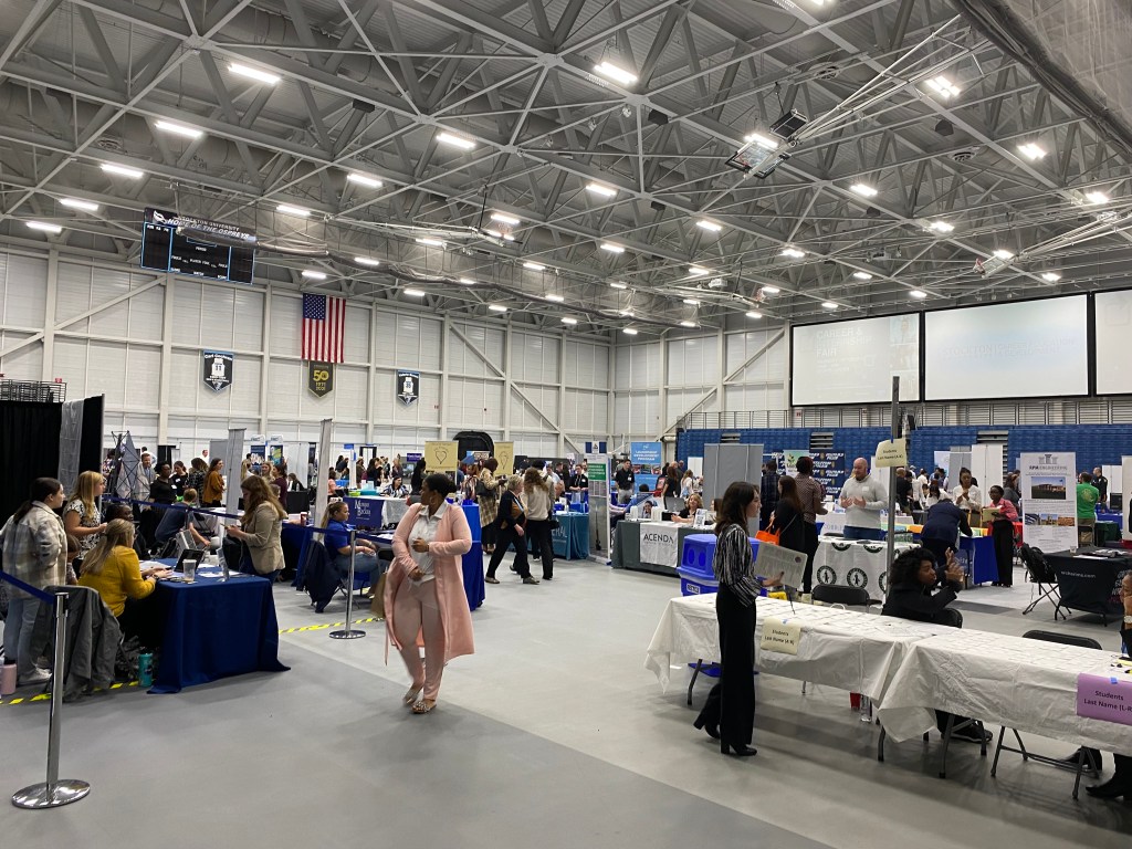 Over 200 Stockton students and alumni gathered at the Sports center on October 13, 2022, between 10:00 a.m. and 2:00 p.m. to meet with 132 employers from different industries like education, criminal justice, marine science, gaming, hospitality, information technology, health, and youth development for the Career and Internship Fair.