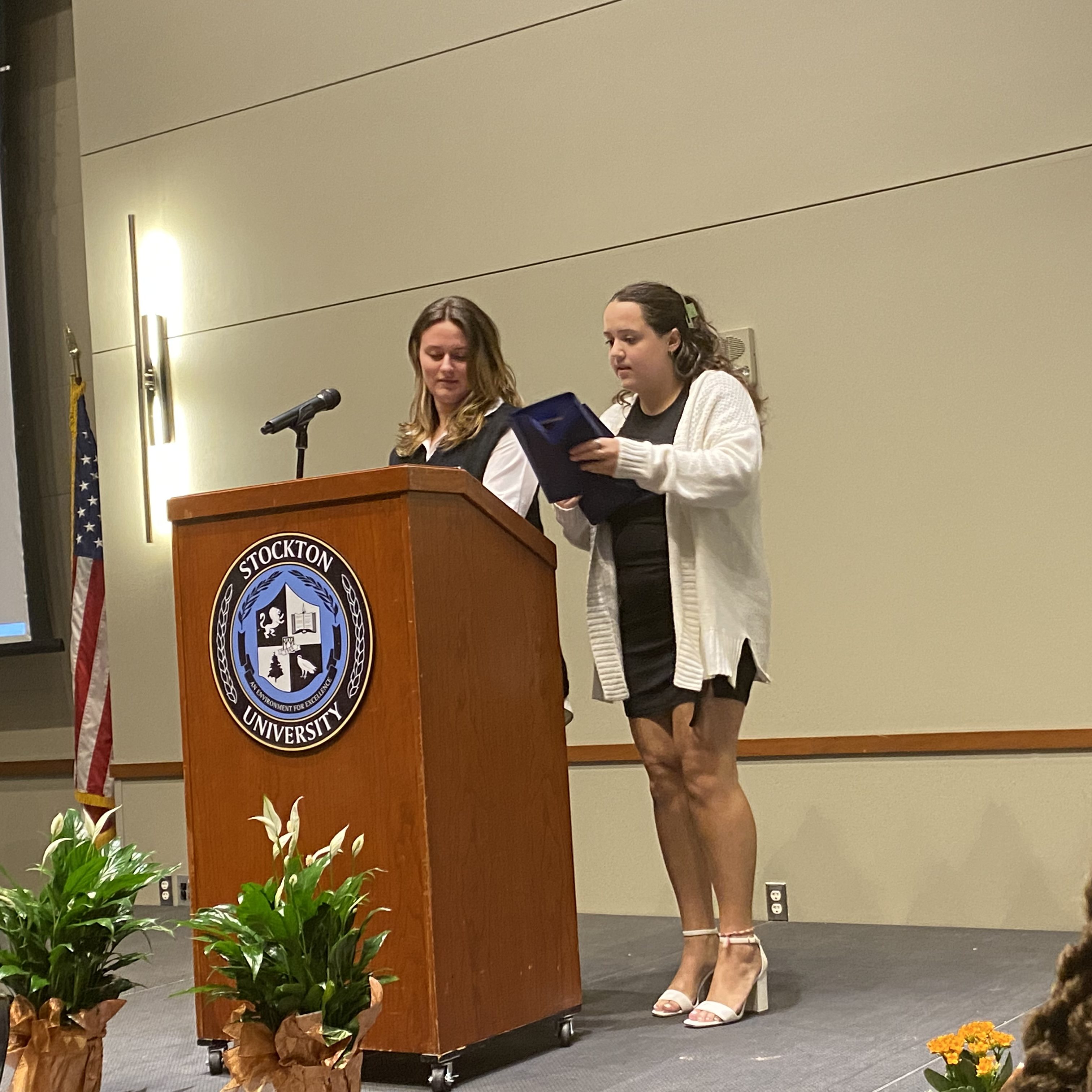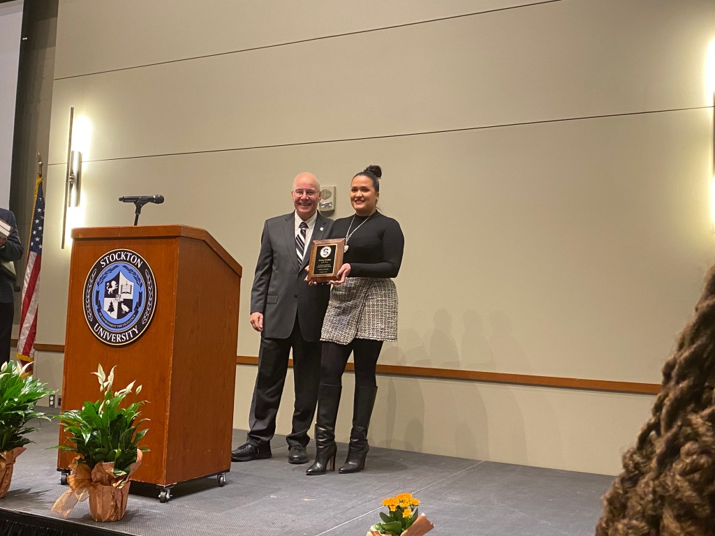 Afterward, Dr. Harvey Kesselman, President of Stockton University was invited to present the Harvey Kesselman Community Impact Award. President Kesselman said that the award is presented to campus community members who show selflessness and contribute to Stockton’s community, and everyone plays a part in making Stockton great.
