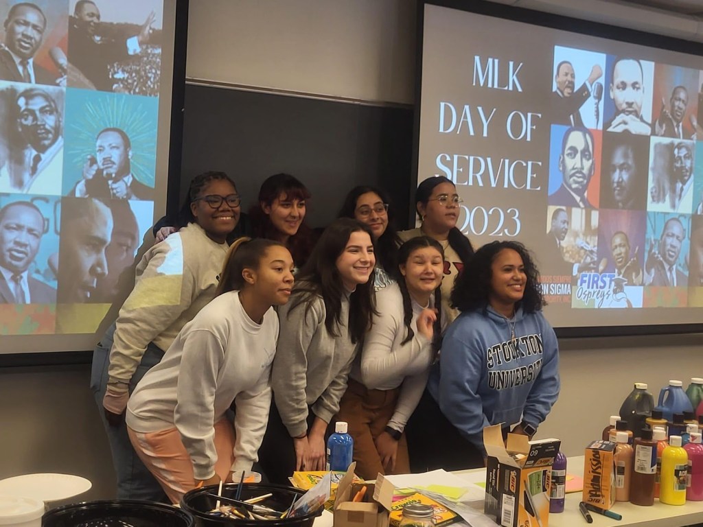 On Monday, February 17, the Spring 2023 semester kicked off with the 19th annual MLK Day of Service. Student organizations and community members came together to work on a variety of volunteer projects. Hosted by the Office of Residential Life and the Office of Student Development, along with many other student organizations on campus, the MLK Day of Service saw large masses of about 700 students, staff, and community members. Volunteers of all ages arrived at the Stockton campuses to participate in over 30 different projects stationed across Galloway, Atlantic City, and Hammonton.