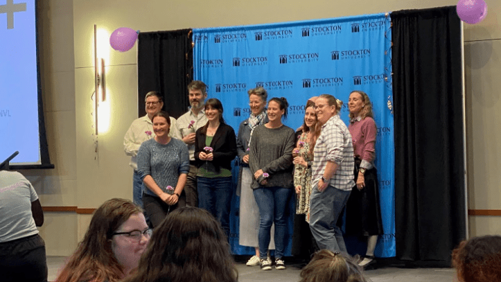 Sophia Bradach read a brief statement from students to acknowledge nine female professors within STEM, while the guest speaker and Stockton alumna Dr. Sara Tadros gave a speech regarding her experience as a woman in a STEM field.