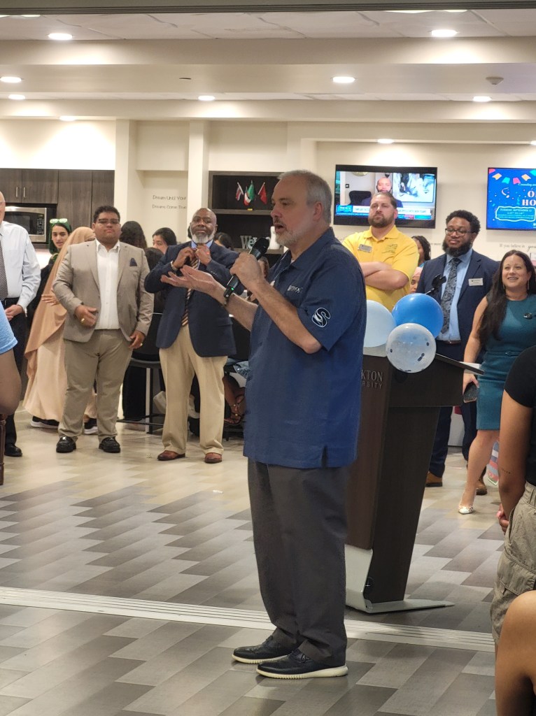 At the entrance, students were given a colored sticker and two affirmation stickers for the event. In the activity, the guests had to find someone with the same color sticker, then someone with a different color sticker, and exchange positive affirmations with them. The activity encouraged the new Ospreys to step out of their regular friend groups and meet someone completely new. Many staff, including President Joe Bertolino, introduced themselves and gave inspiring speeches to the guests, reaffirming the SPACES motto: Be. Believe. Belong.