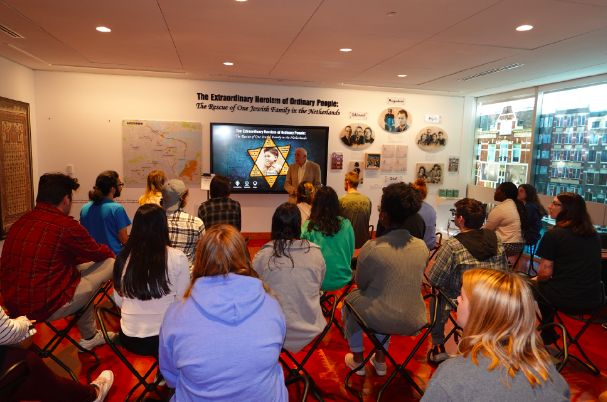 The room that Leo Ullman spoke in was the Stockton Holocaust Resource Center and it is dedicated to telling the story of Holocaust survivors in Amsterdam. When the Holocaust Resource Center isn’t receiving visits from survivors, they are engaged in projects related to education on survivors or providing courses for their Holocaust and Genocides minor program, even offering dual credit programs to high school and international students.