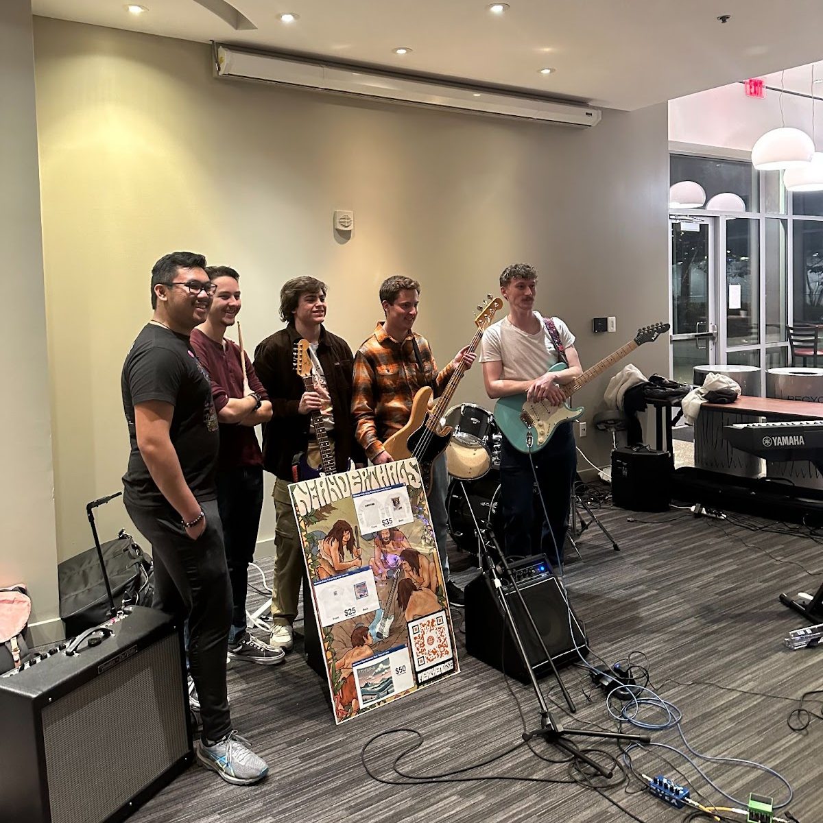 During the event, The Neanderthals performed a couple of songs, which included original songs titled “Tokyo Express” and “The Ancient Times.” Other songs they performed were “Chambers of Reflection” by Mac Demarco, “Rose” by Innerwave, “Brooklyn Bridge to Chorus” by the Strokes, and “America’s Cup,” by an Australian band named Pond. The event ended with pictures of the band members, and them promoting some new and upcoming merch. They wrapped up by telling attendees to keep an eye out for their new album.
