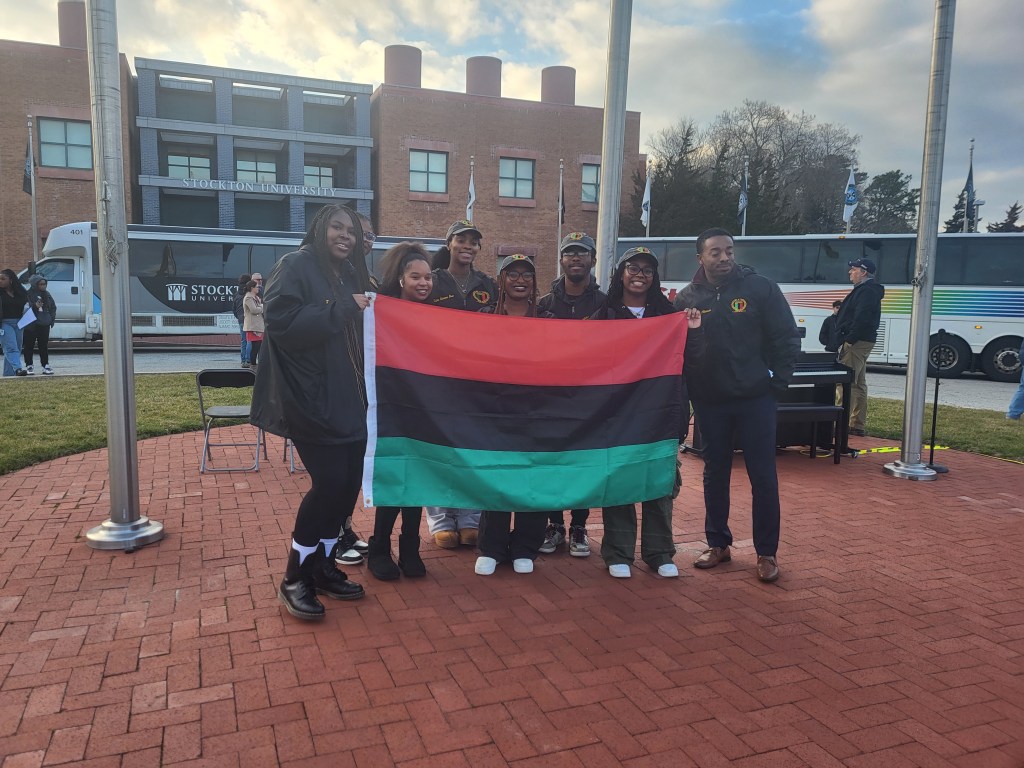 February 1st marked the beginning of a very important month of the year: Black History Month. As is tradition at Stockton, the Unified Black Students Society, with help from other organizations, including the Caribbean Student Association and African Student Organization organized the annual Flag Raising in the Arts and Sciences Circle in honor of the historic month. Club members, faculty, staff members, students, and Stockton University’s President, Joe Bertolino, attended the event.