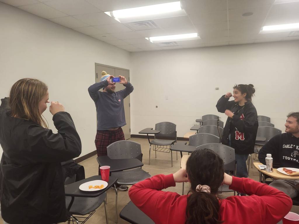Members of the club brought lots of games to enjoy, from card games to video games. One member even had Super Smash Bros. available on a new Nintendo Switch, a game that is enjoyable to both beginners and regular players. Another group played the classic “Heads Up” game, bringing laughter and interesting charades to the room. Any newcomer to the club would feel perfectly comfortable and relaxed in the environment, enjoying free pizza and making new friends. The small group made it easy for everyone to socialize and not feel anxious about meeting a large group of people. In this room, no one was a stranger.