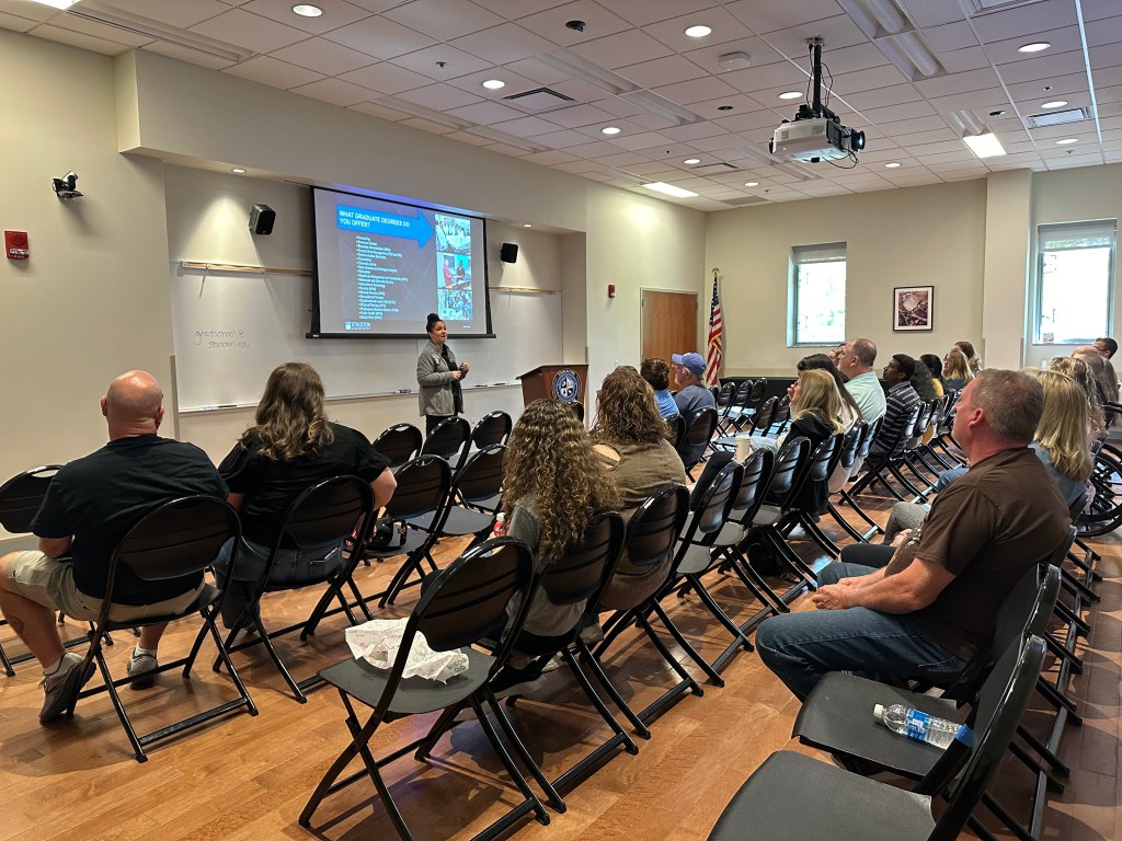 On October 6, 2024, Stockton University held an Open House for future and prospective undergraduate and graduate students, offering the opportunity to learn about Graduate school — if it is the next step in their career journey — and whether Stockton’s grad school is the right fit. During the events, faculty, staff, and student leaders offered presentations, provided information, and answered questions about navigating the early stages of this process.