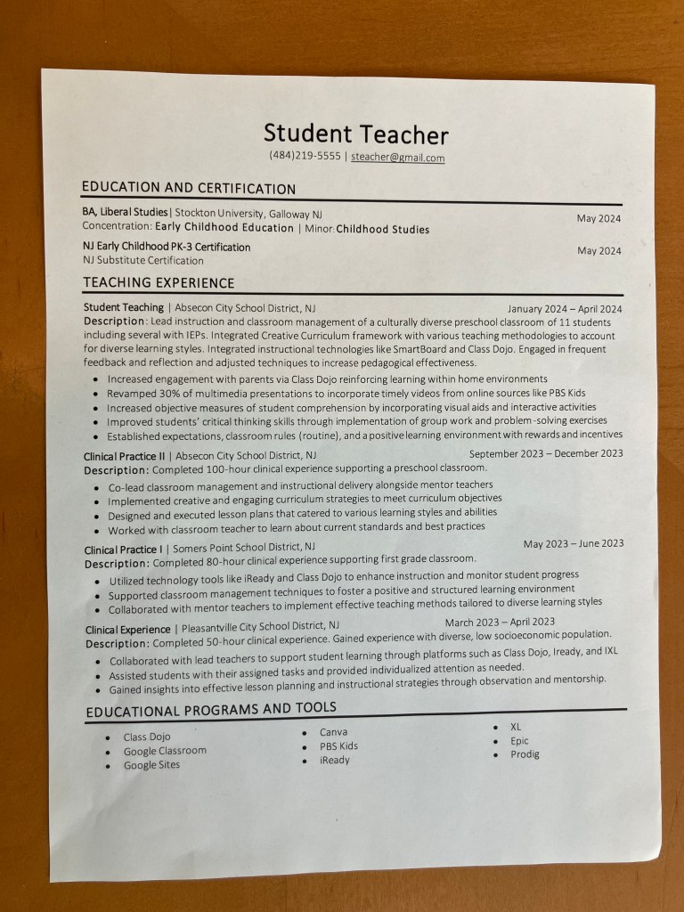 The Resume Rush was open to current and alumni Stockton students, providing them with the opportunity to create or revise resumes for future career opportunities. An alumni — Connor Morgan, who received his degree in Computer Information Systems, went to the resume rush looking to spice up his resume as he is starting to apply for jobs within his field. When asked about what the event was like, he stated, “The person who I met with was easy to talk to and he helped point out the small problems with my resume that I honestly would have never noticed.”