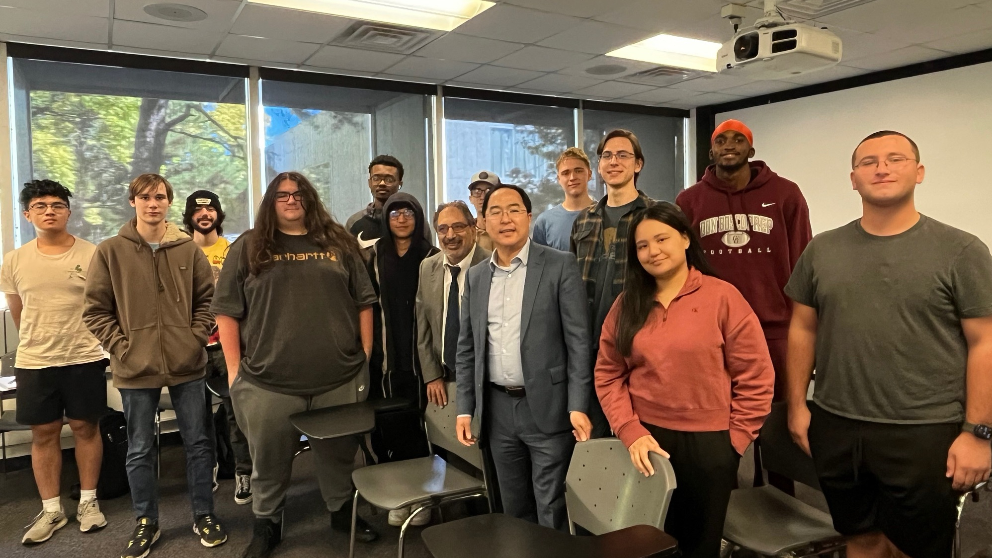 Responding to questions from students in the classroom, Kim spoke about education as a key driver of economic mobility. “Education is one of the best ways to protect economic opportunity,” he noted. He quickly acknowledged the large upfront cost of higher education, but stressed how essential it is for advancing both as a society and individuals.
