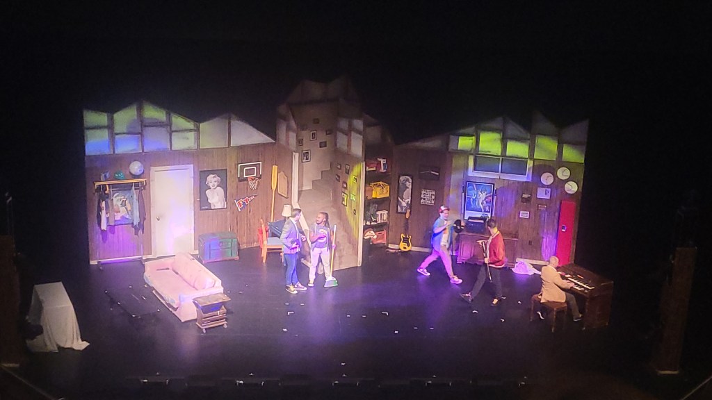 The act is set in a suburban basement designed exactly like the cast’s original “hangout” during their youth, immersing them in the memories and music that brought them to where they are today. The start of the show immediately caught the audience’s attention: while in most shows, the PAC dims the lights, the show started with the lights still at their full brightness.