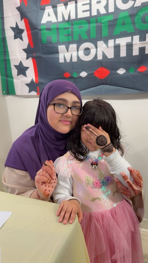 The event ended with dinner, as everyone engaged in conversations about their Eid celebration. Stations continued as members of the audience created art through calligraphy and henna.