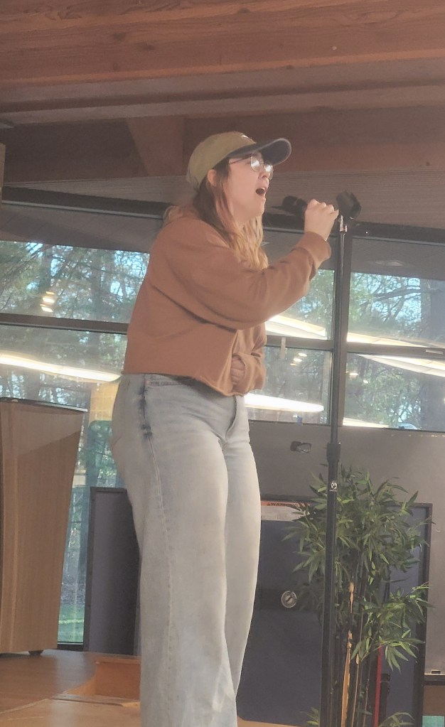 The club had students sign up to showcase their singing chops, whether they had experience or not, and it provided a medley of fun and recognizable songs that had the audience dancing in their seats and mouthing along to the lyrics. Songs from musicals like “The Greatest Showman” and “Mamma Mia,” Disney movies like “Tangled,” and famous voices like Ed Sheeran were among the bunch. Once the performances were over, the audience voted for the 1st, 2nd, and 3rd-placing singers who received Amazon gift cards as prizes.