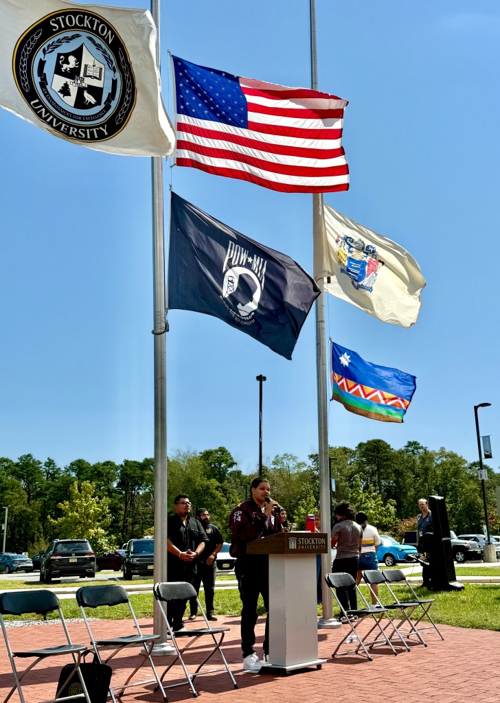 On Friday, September 12, members of Stockton University’s Hispanic Heritage Committee, as well as the Mexican Student Association and Guatemalan Student Association, joined forces for the ceremonial flag raising honoring Hispanic Heritage Month. They were accompanied by students from Latinx Greek organizations, supportive students and faculty, and President Joe Bertolino.