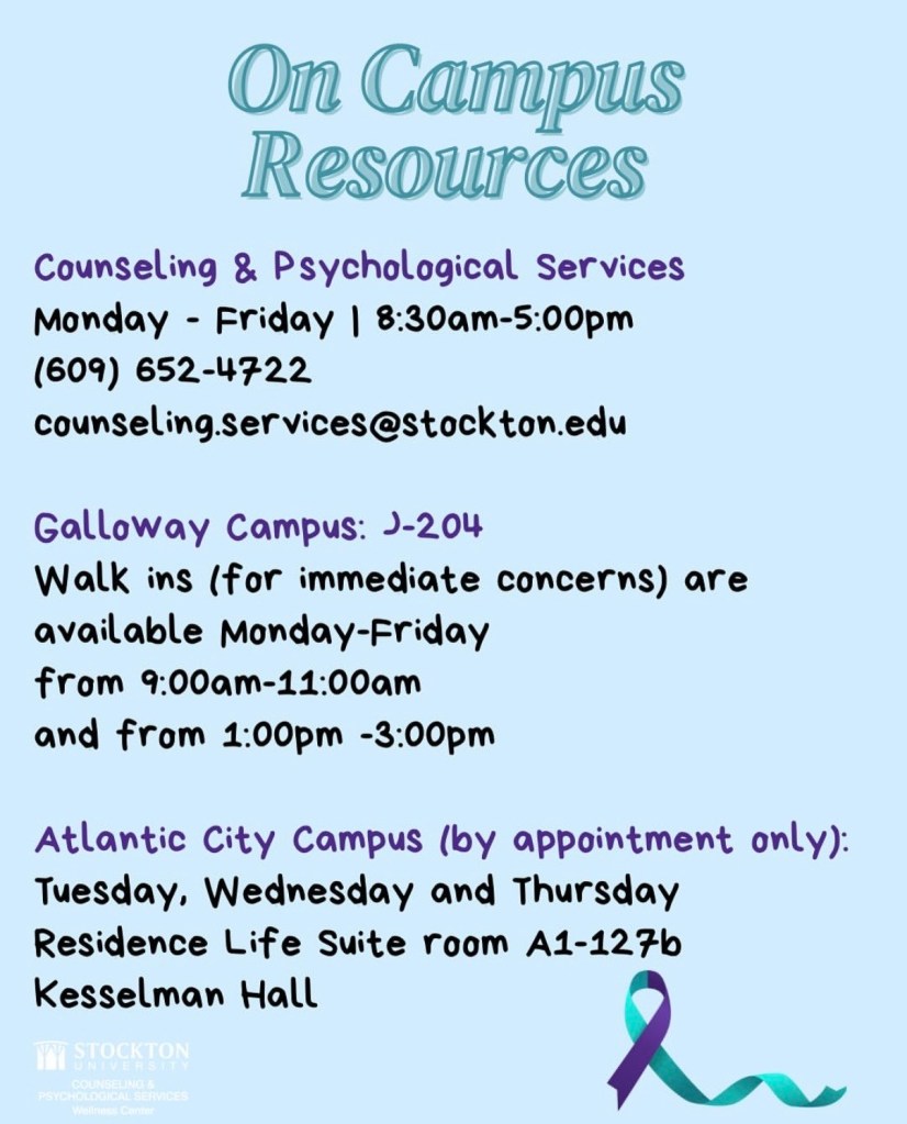 The CAPS program wishes to showcase the resources that are easily accessible and free for students to use. They are presenting the availability of safe spaces for anyone who might be struggling with their mental health, as well as providing connections to resources available outside the walls of Stockton University.