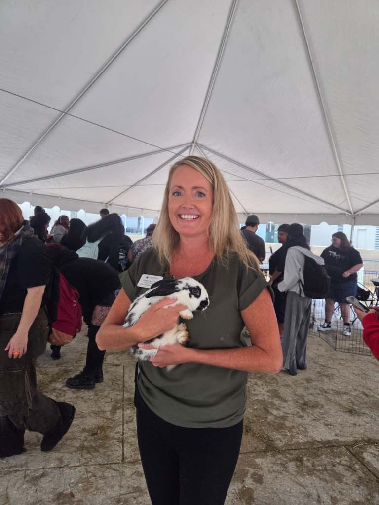 Outside, in D/F Wing Plaza, there was a shaded petting zoo available for students to hang out with adorable farm animals such as ducks, goats, and bunnies offering cuddles and comforting pets. There was also a dunk tank for students to partake in, making the volunteers potentially fall into a vat of water as the tennis balls narrowly missed the target. It brought a lot of humor to the participants and the passing visitors coming to check out the big event.