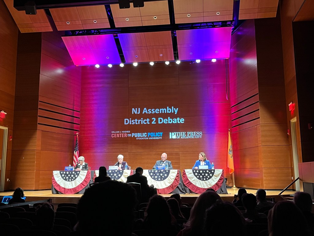 On behalf of William J. Hughes Center for Public Policy at Stockton University and The Press of Atlantic City, one of the debates for the ongoing election was held in the Campus Center Theatre on Tuesday, October 21 from 7:00 p.m. to 8:00 p.m. The event, which was both open to the public and live-streamed, asked the candidates the public’s questions regarding issues in South Jersey. Each candidate was given a one minute response, and if mentioned by name, a thirty-second rebuttal. The questions covered a wide variety of topics, including but limited to the following: cost of living, energy policies, taxes and property tax relief, unemployment, casinos, homelessness, beach protection, and New Jersey Transit.