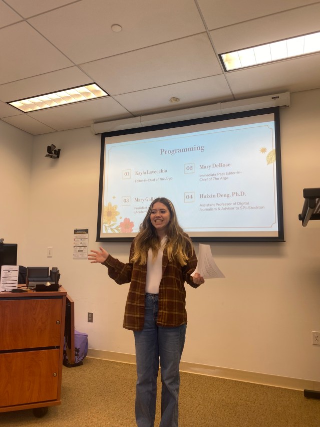 The current Editor-in-Chief, Kayla Lavecchia, spoke to students about the Argo and it’s significance since its founding in 1971. She further emphasized that the main goal of The Argo is to have students’ voices heard every week. She mentioned that there is a partnership with the Press of Atlantic City that is fairly new and in the works to provide more opportunities for the writers of Stockton University. Moreover, Lavecchia, mentioned that The Argo has new hiring positions open such as Assistant Editor, Social Media Manager and a Copyeditor for the upcoming fall semester.