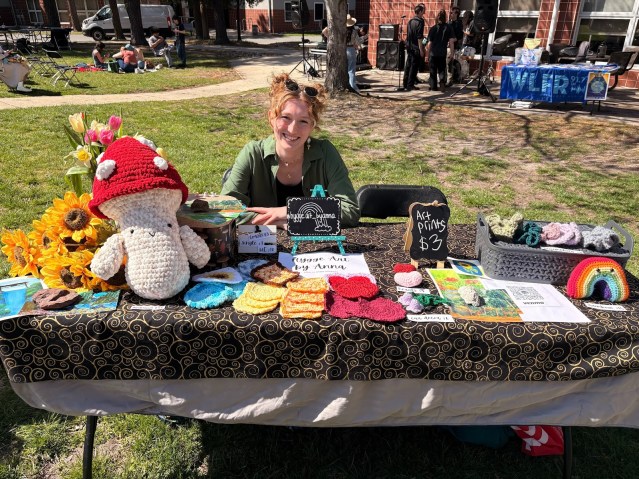 Additionally to the outdoor community vendors, students were encouraged to participate in tabling if they also had a small business of their own. Anna Becker, a sophomore majoring in Environmental Science and Chemistry, sold her hand made crocheted items and art prints through her small business, Hygge Art by Anna, and quotes that “my small business is how I do my stress relief. Being an active student member and being involved in different organizations makes it really hard to find that time. But when I do, it really brings a smile to my face.”