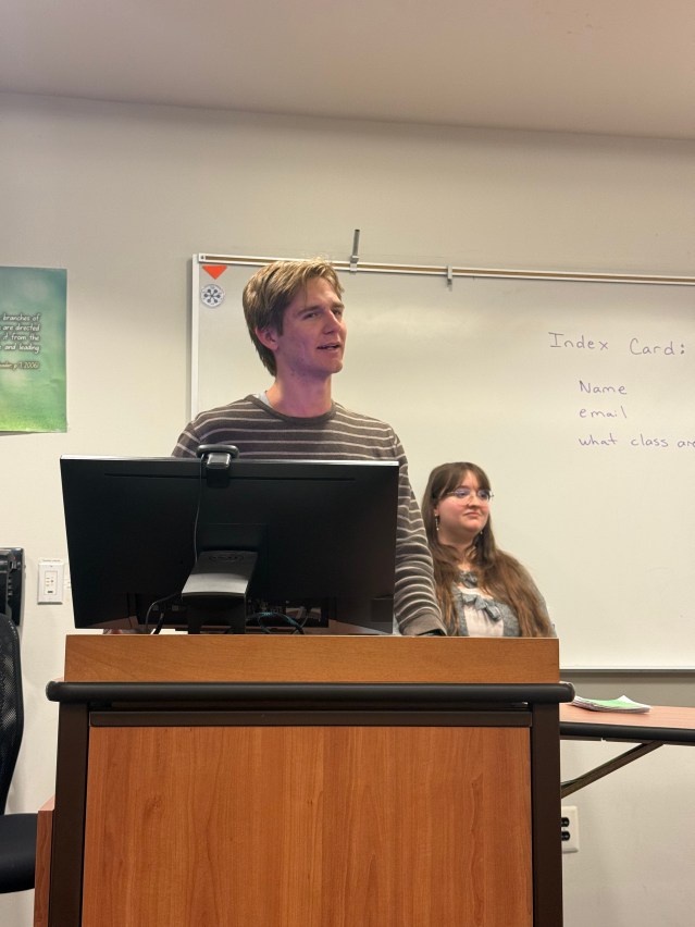 Dr. Emily Kaplitz, Assistant Professor of Computer Science, was very real about what success actually feels like. She said that she thought getting her PhD would be the moment where everything clicked and she “made it,” but that feeling didn’t really last in the way she expected. Instead, she pushed students to think about a different question: not “how do I succeed?” but “how do I get happy?”