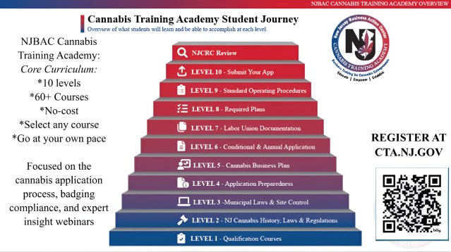 In 2022, the New Jersey Business Action Center (NJBAC) launched the Cannabis Training Academy (NJ CTA), which has since had over 2,400 registered entrepreneurs, nearly 300 of which being cannabis employers or employees. With over 30 webinars and virtual student focus groups, this program has been recognized nationally as the most comprehensive cannabis technical assistance program in the United States.